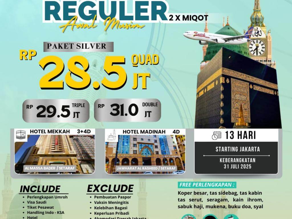 Umroh Reguler Awal Musim 31 Juli 2025 Silver 2X Miqot