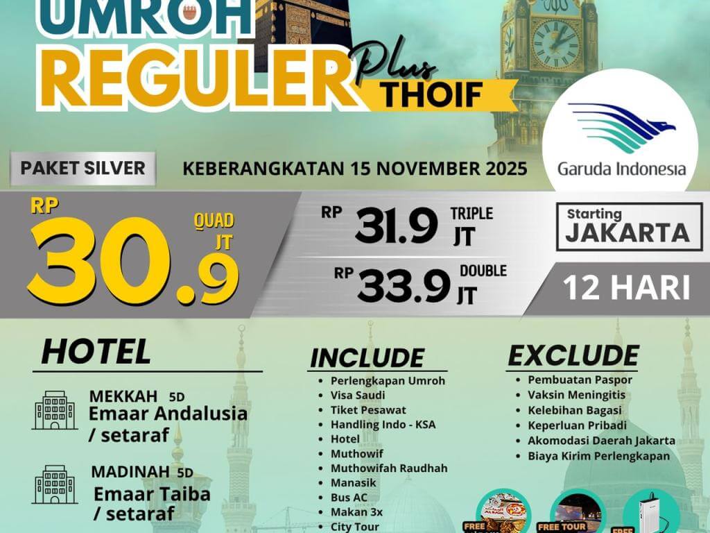 UMROH REGULER PLUS THOIF 15 NOVEMBER SILVER