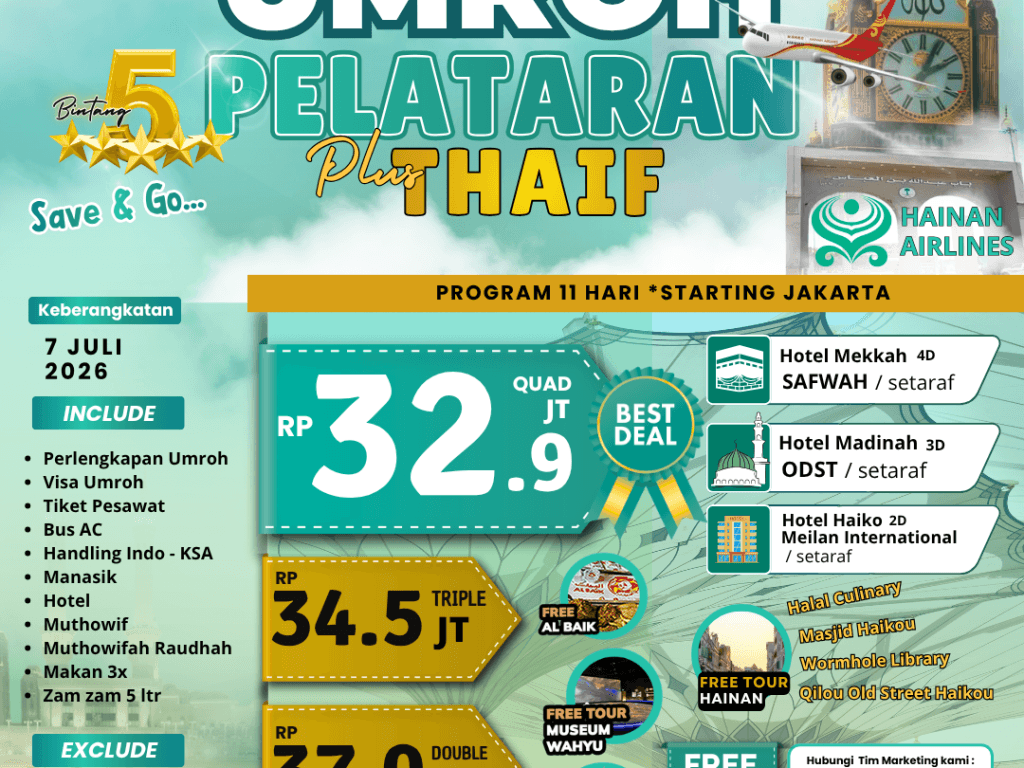 UMROH PELATARAN PLUS THAIF 07 JULI 2026