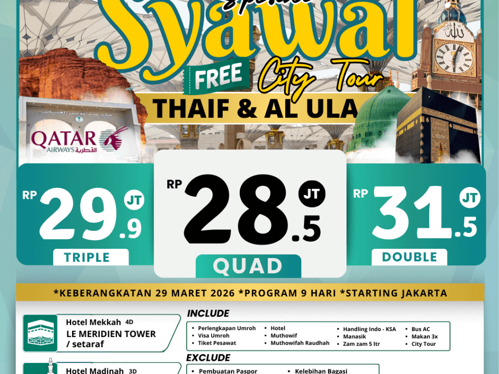 UMROH SPECIAL SYAWAL 29 MARET 2026 FREE THAIF & AL ULA