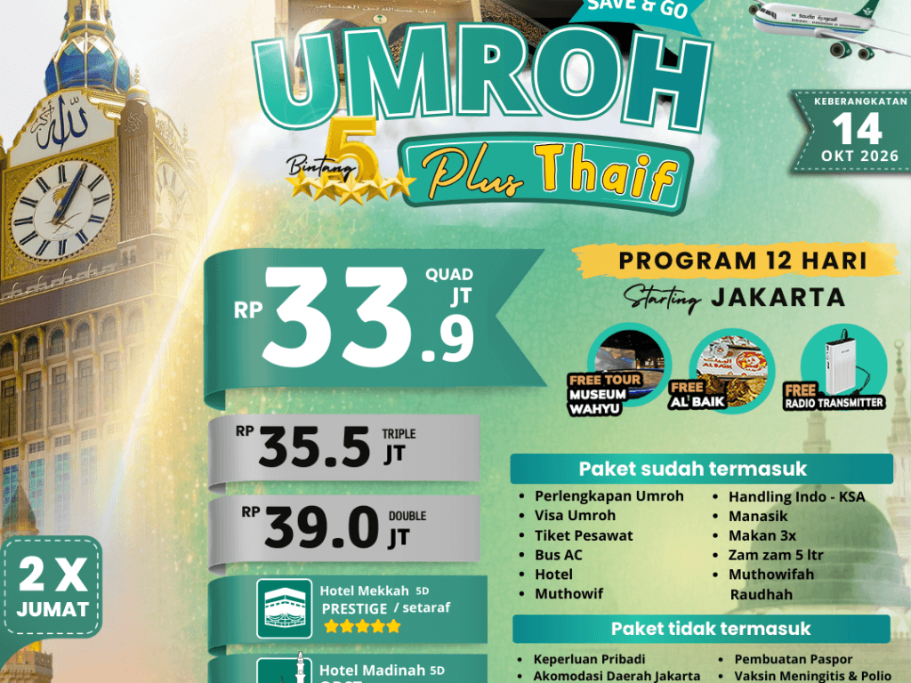 PAKET GOLD UMROH PLUS THAIF 14 OKTOBER 2026